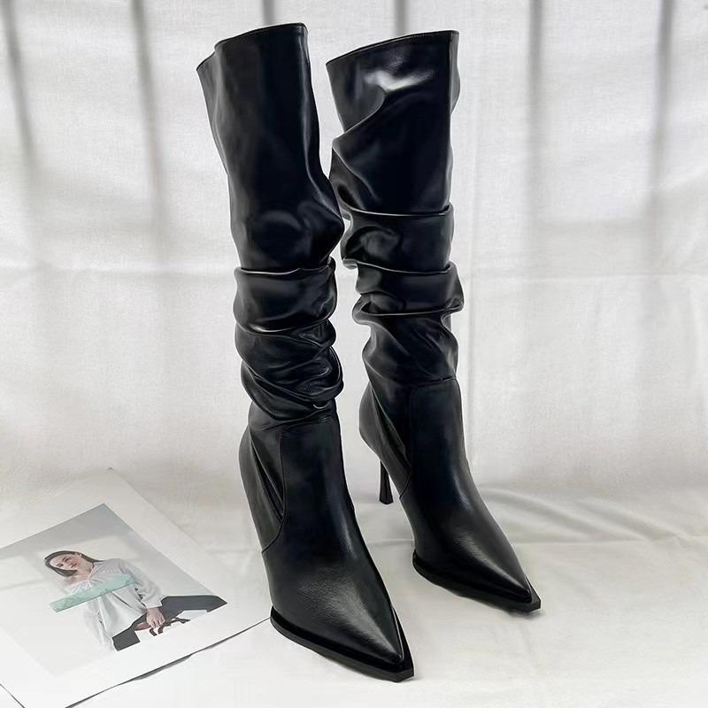 Модные женские сапоги на высоком каблуке, сексуальные сапоги с острым носком и высоким каблуком, кожаные сапоги, модные сапоги до колена для женщин, элегантные туфли для танцевальной вечеринки