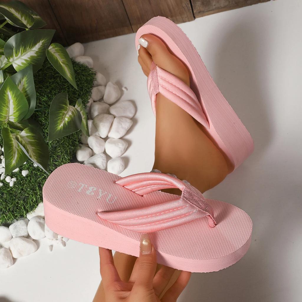 Модные летние женские тапочки Легкие домашние туфли Пляжные сексуальные шлепанцы Уличные модные тапочки Сандалии на платформе и танкетке Шлепанцы женские