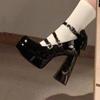 Модные женские туфли-лодочки на массивной платформе, модные туфли на высоком каблуке из лакированной кожи, туфли Мэри Джейн, туфли на высоком каблуке, туфли Лолиты, обувь для косплея