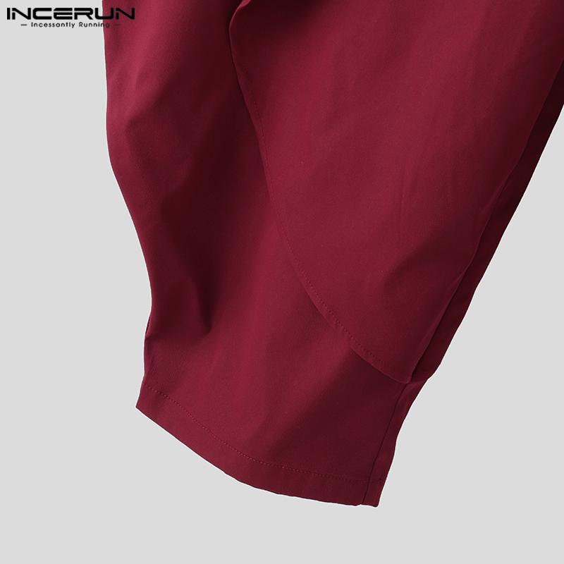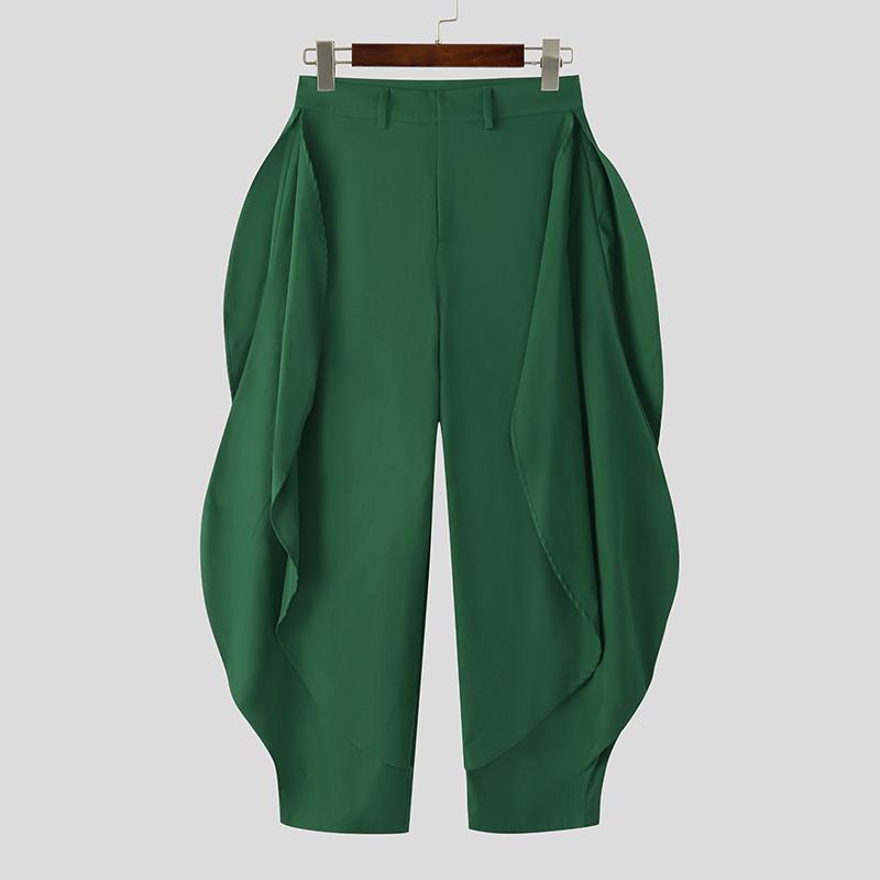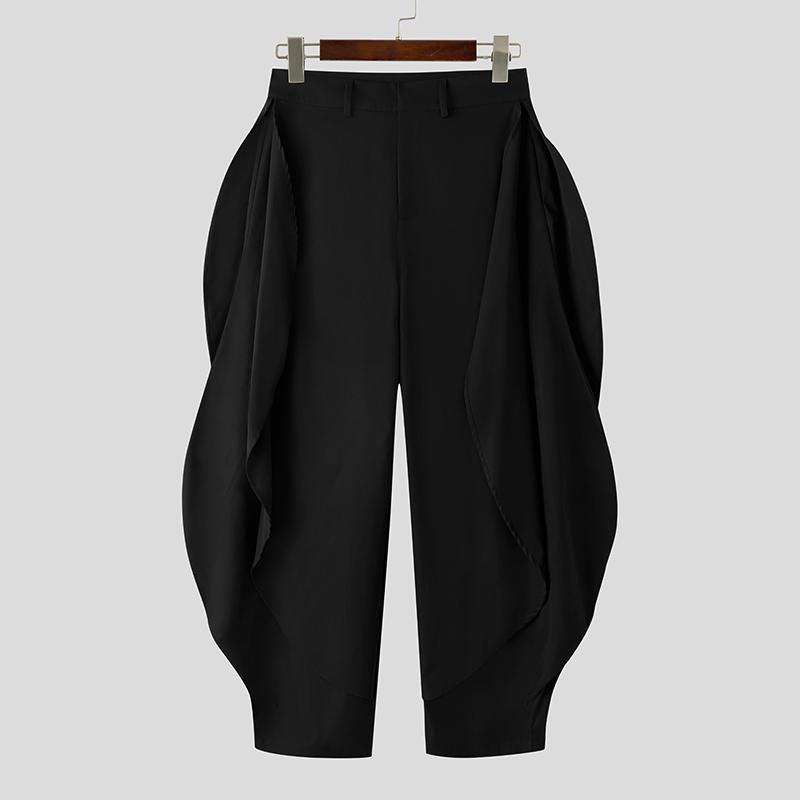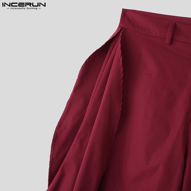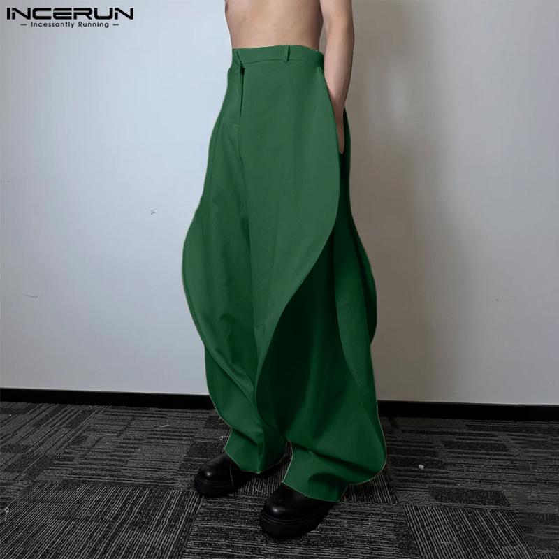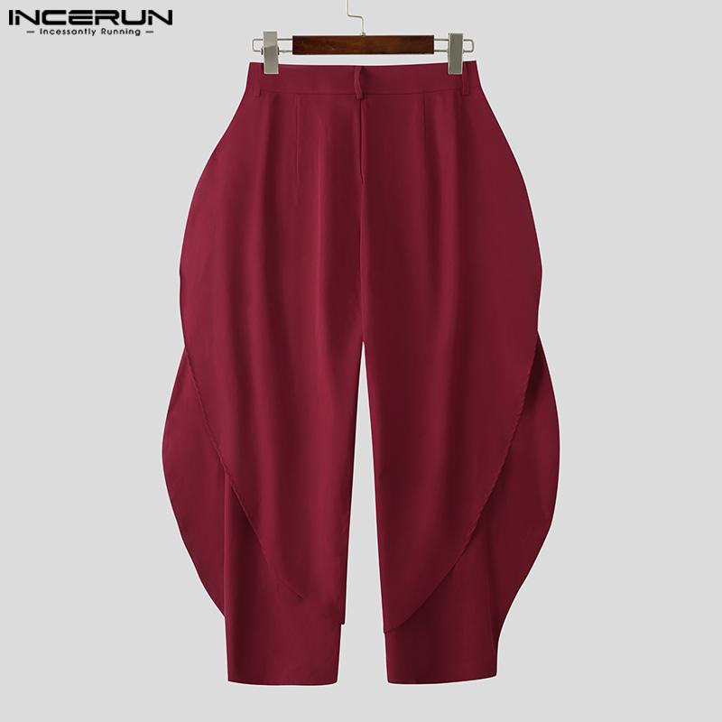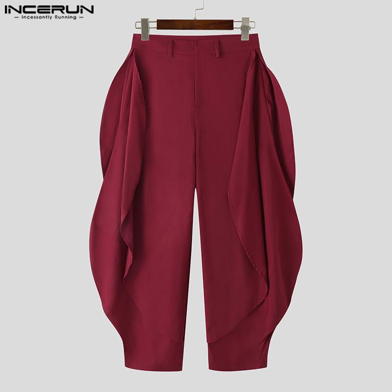 INCERUN Мужские брюки гаремы однотонные с молнией на талии, повседневные, длинные, с нерегулярными оборками