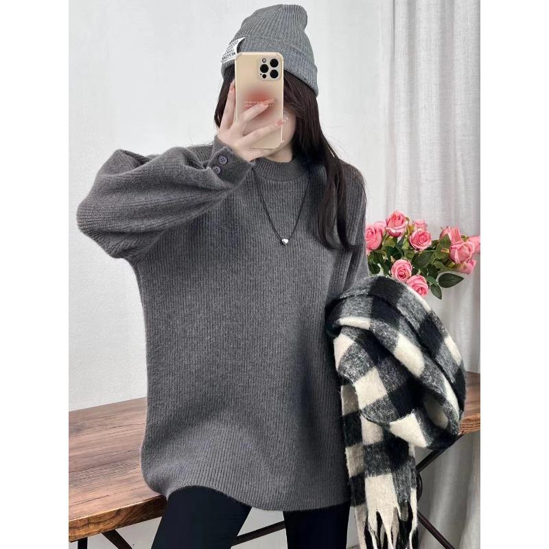 Свободный трикотажный пуловер с утолщенными манжетами в стиле ленивого ветра для женской осени и зимы, средней и длинной длины, для женщин