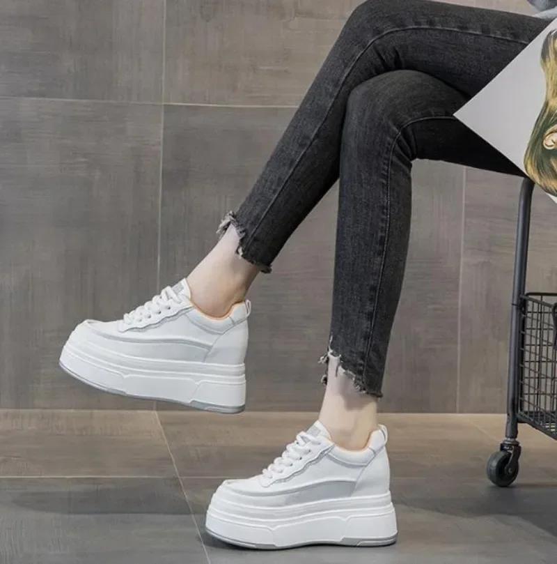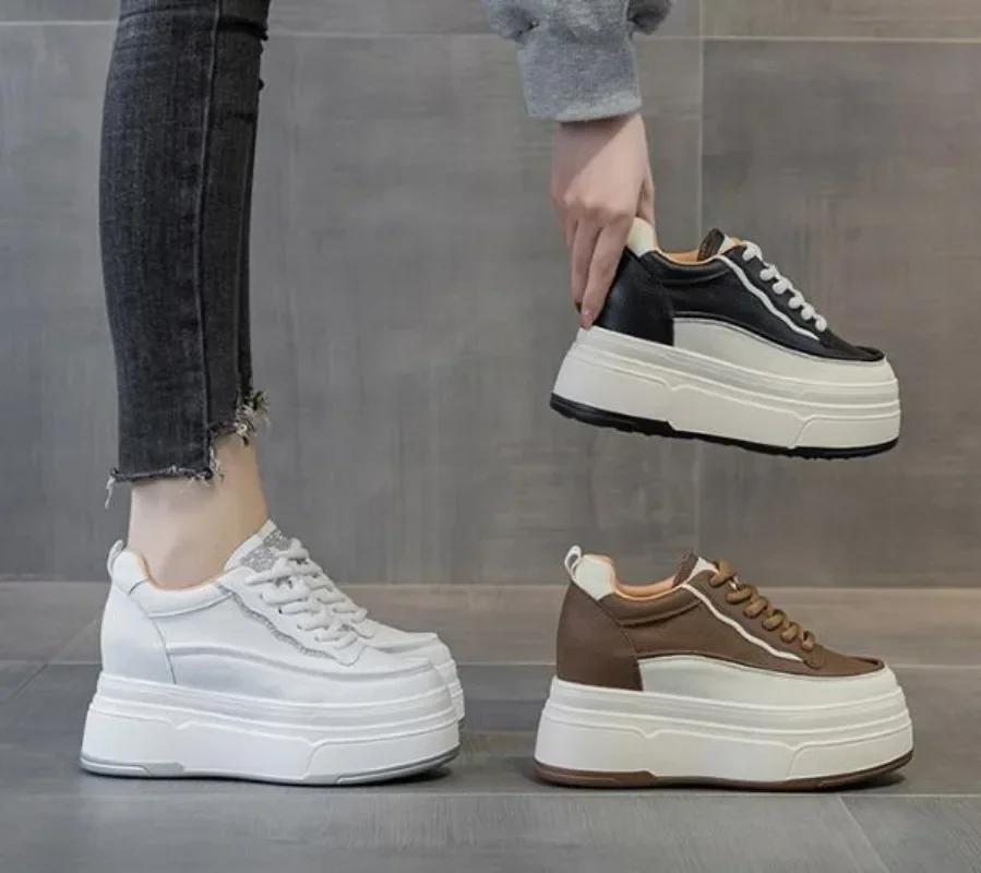 Мода Мода 9см Синтетическая Натуральная Кожа Весна Массивные Кроссовки Обувь Женщины Боевые Осень Теплые Зима Ботильоны на Платформе Танкетке до Щиколотки