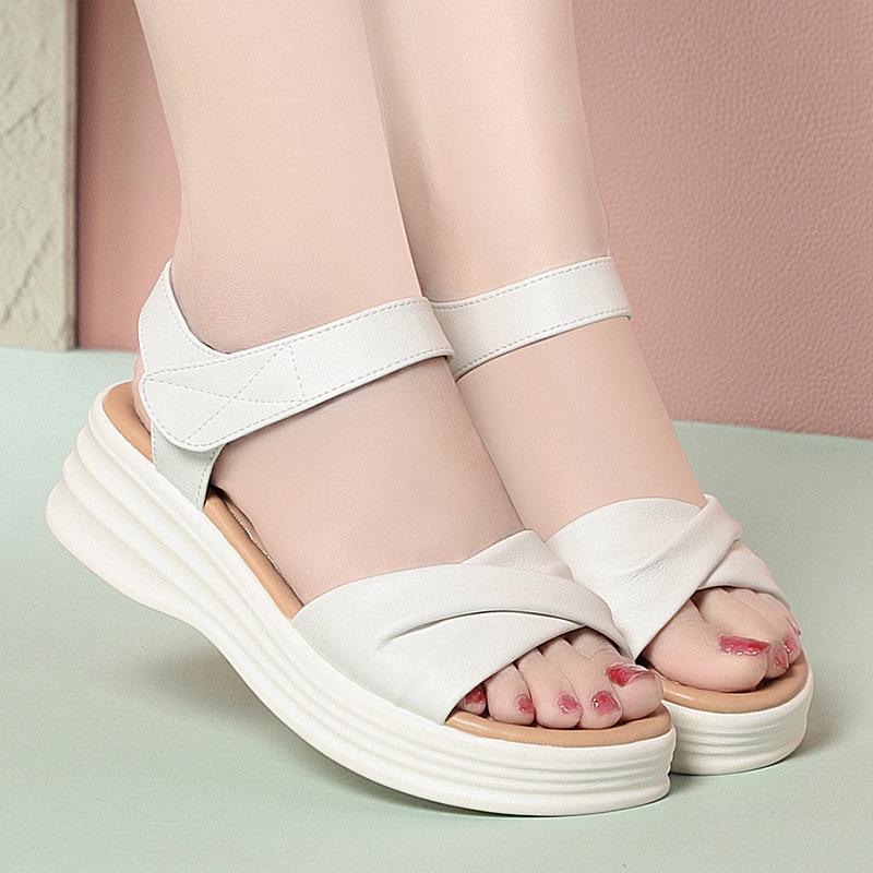Модные сандалии на плоской подошве для мам для женщин 2025 толстая подошва новая обувь для женщин обувь с мягкой подошвой в виде бисквита летняя женская обувь