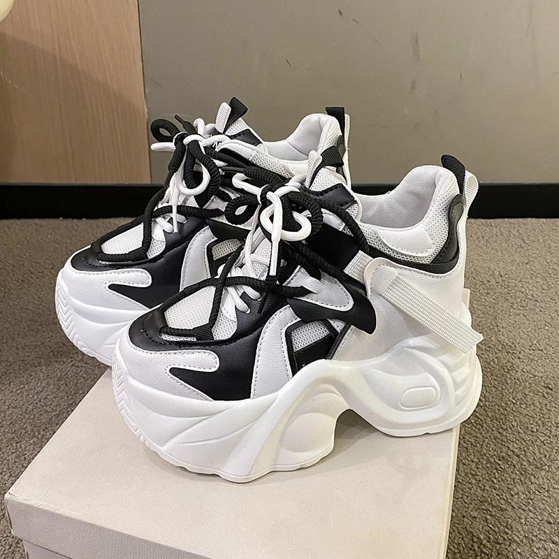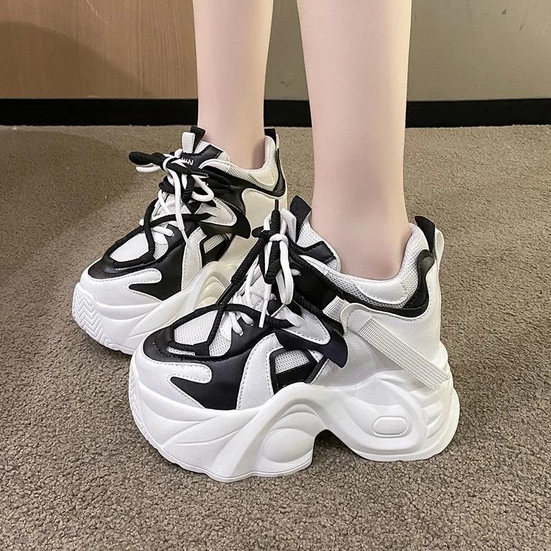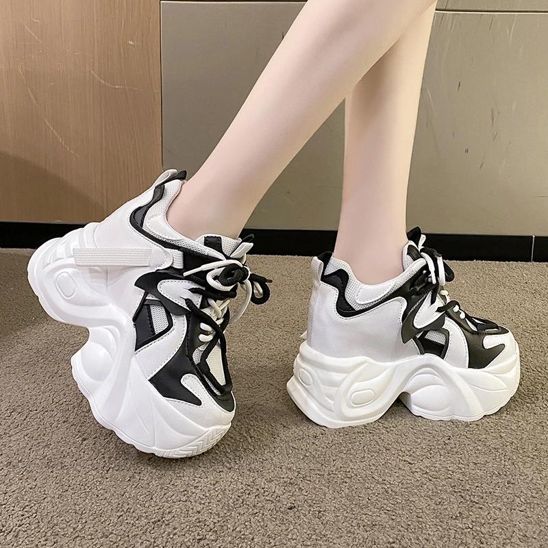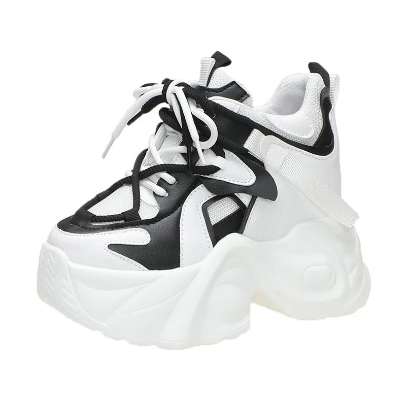 Модные 9,5 см осенние женские повседневные спортивные туфли универсальные удобные женские кроссовки на толстой подошве дышащая сетка весенние туфли на высокой платформе