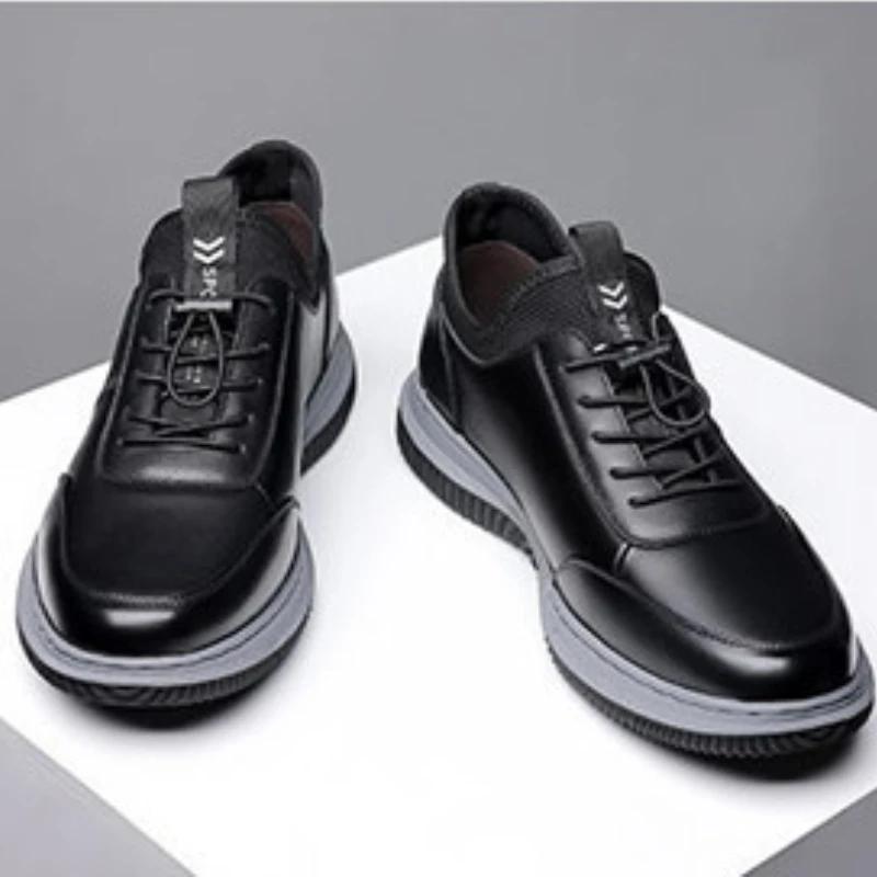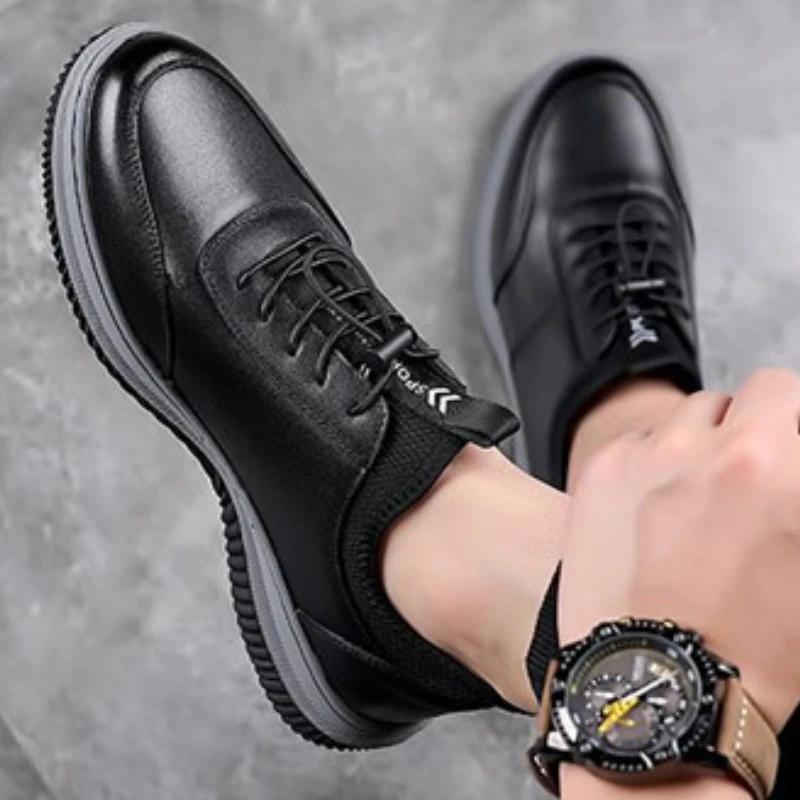 Модная кожаная повседневная спортивная обувь для мужчин, весна 2025, новая деловая обувь на мягкой подошве, модная и легкая обувь для скейтборда