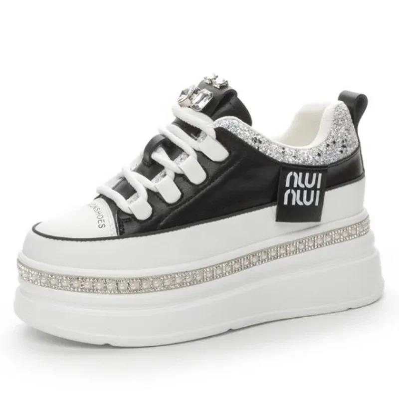 Модные женские туфли на платформе и танкетке из натуральной кожи высшего качества 7 см, осенне-весенние туфли на скрытой танкетке, женские вулканизированные кроссовки с блестками, повседневная обувь