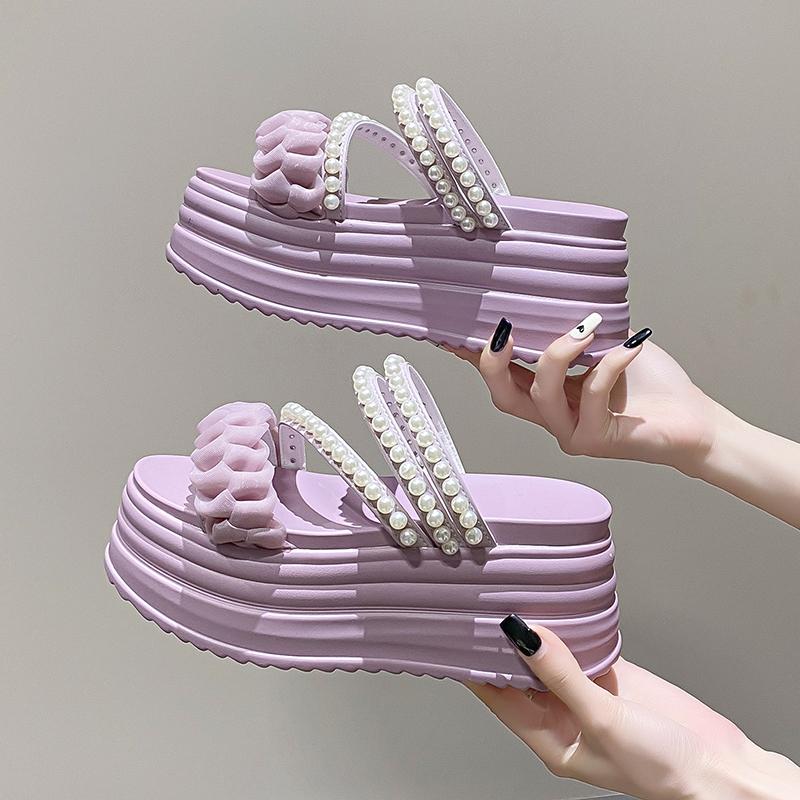 Fashion 9CM Summer Casual High Platform Sandals Women Buckle Strap Slippers Thick Bottom Pearl Sandalias Woman Chunky Beach Shoes Mujer
