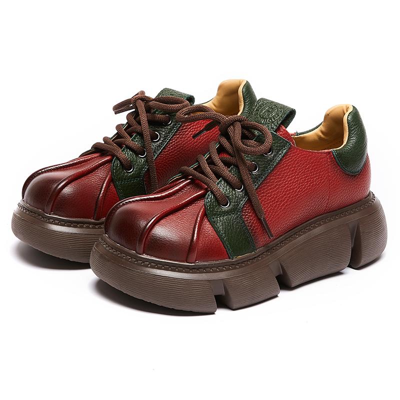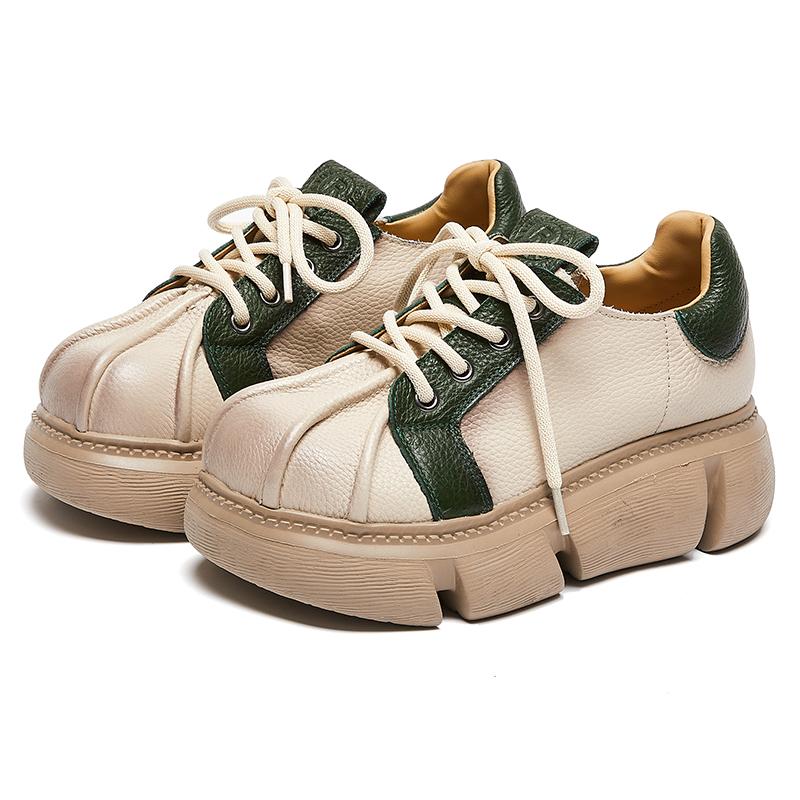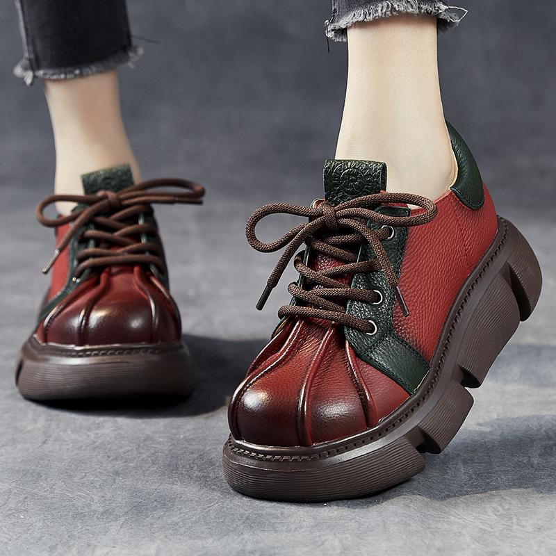 Модные туфли-лодочки GKTINOO на толстой подошве с увеличением высоты, весна 2025, новая коллекция, натуральная кожа, шнуровка, универсальные, ретро, женские туфли на платформе