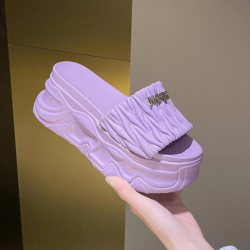 Модные 7 см шлепанцы женские тапочки на очень высоком каблуке туфли на платформе танкетки пляжная обувь плиссированные сандалии летние новые массивные туфли женские — купить товар онлайн с бесплатной доставкой по всему миру!