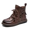 Модные Высококачественные 3СМ Новый Дизайн Женские Летние Дышащие Туфли Ажурные Прохладные Ботинки Литературный Стиль Натуральная Кожа Плоские Ботильоны