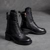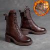 Мода 2025 Ручная работа Ретро Сапоги на высоком каблуке Женские Осень Зима Натуральная коровья кожа Круглый носок Молния Тренд Теплые Сапоги до середины икры Женские