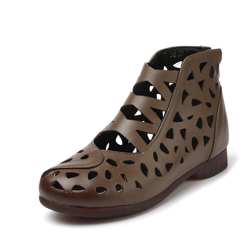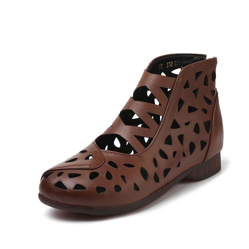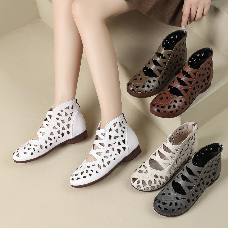 Модные летние сандалии GKTINOO из натуральной кожи, дышащие полые ботильоны, мягкие нескользящие удобные сандалии для женщин большого размера