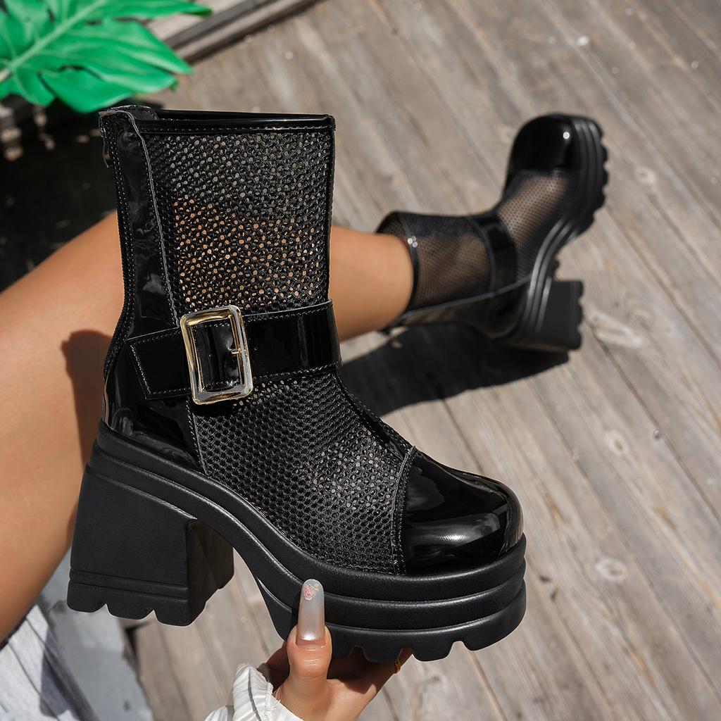 Модные женские ботильоны однотонные с круглым носком сетчатые дышащие удобные женские сандалии летние на толстом каблуке модная обувь женская