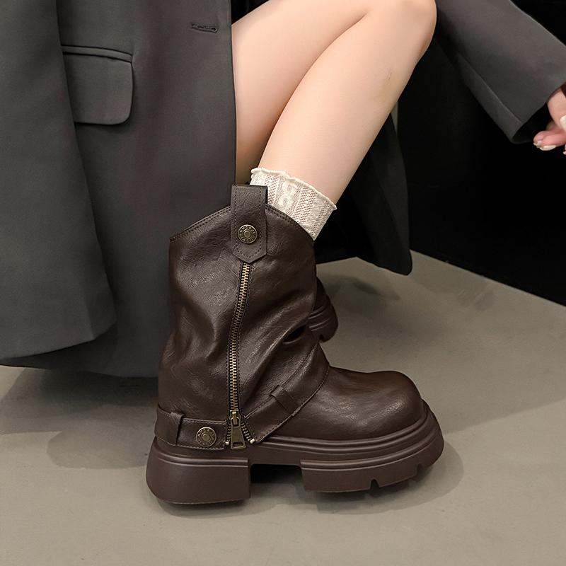 Мода Зима Платформа Толстый Каблук Женские Короткие Ботинки Модные Туфли с Пряжкой Ремня Уличный Стиль Банкет Мотоциклетные Боты Женские