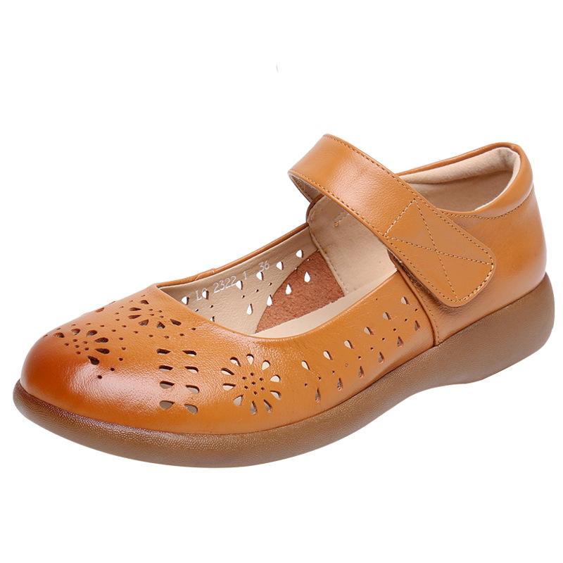 Модные женские балетки из натуральной кожи GKTINOO, летняя обувь, женские повседневные лоферы больших размеров, с полым круглым носком, мягкие удобные сандалии