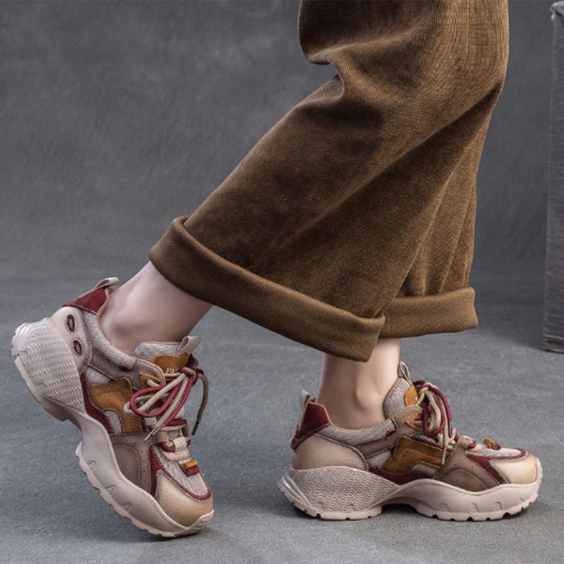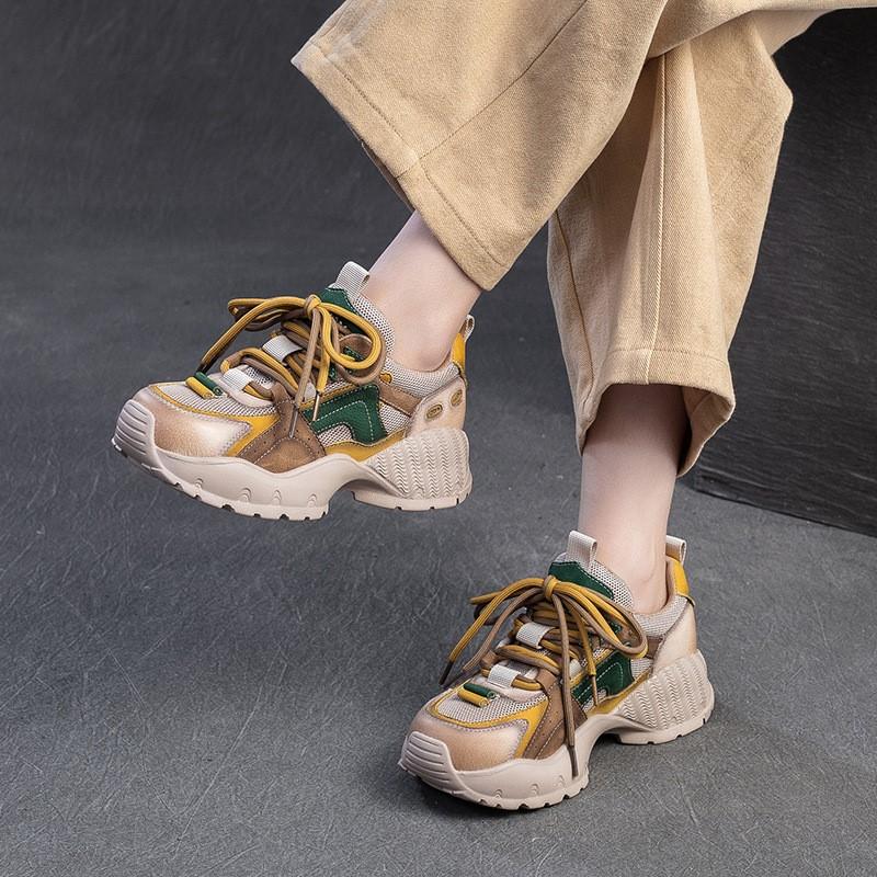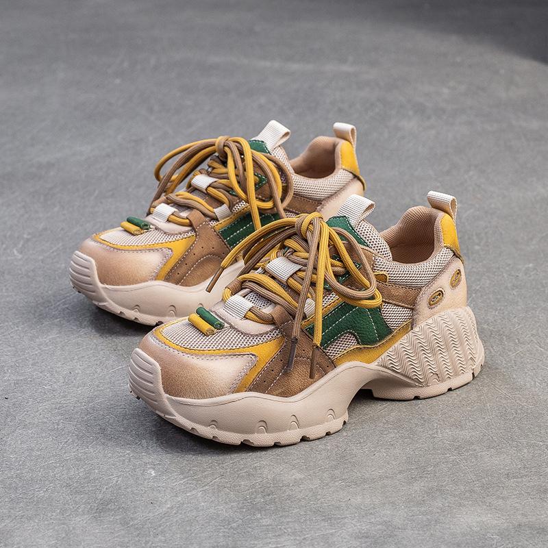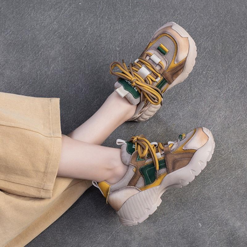 Мода GKTINOO 2025 Новые Повседневные Натуральная Кожа Сплетенная Сетка Смешанные Цвета На Шнуровке Модные Удобные Универсальные Женские Туфли