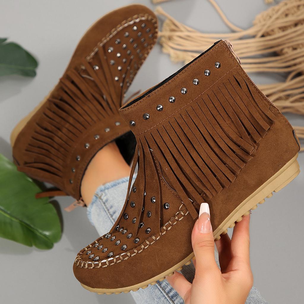Мода 2024 Новые Зимние Женские Ботинки с Кисточками для Улицы Женские Удобные Плоские Нескользящие Модные Ботинки на Платформе Обувь для Женщин