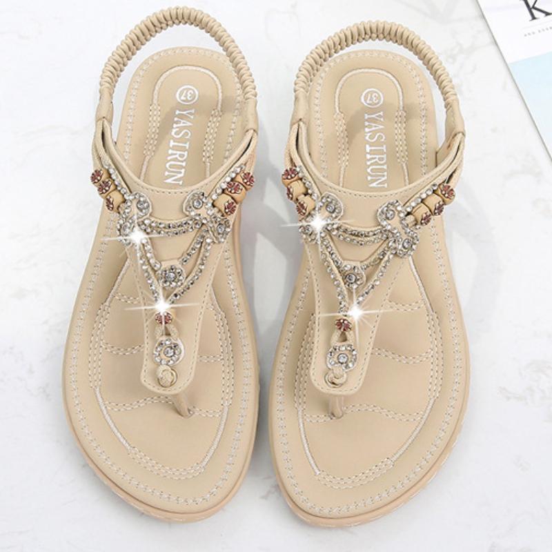 Модная обувь Женская 2025 Лето Римские сандалии Ретро Вьетнамки с перемычкой Стразы Клиновидная платформа Пляжные Богемные Шлепанцы Сандалии Женские