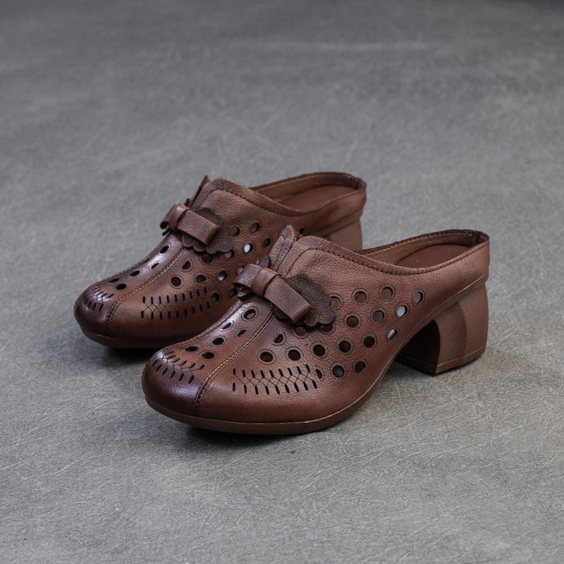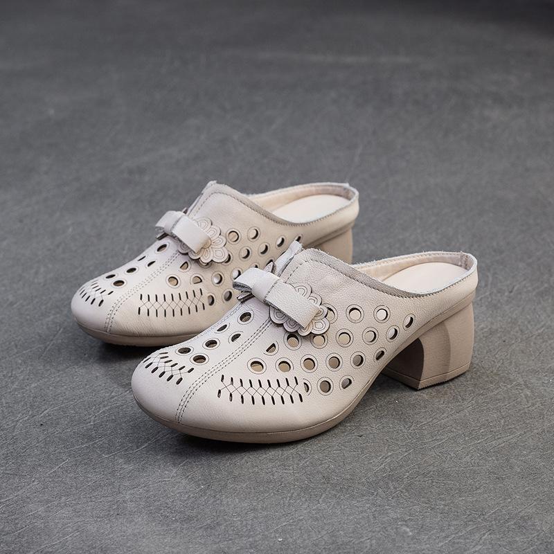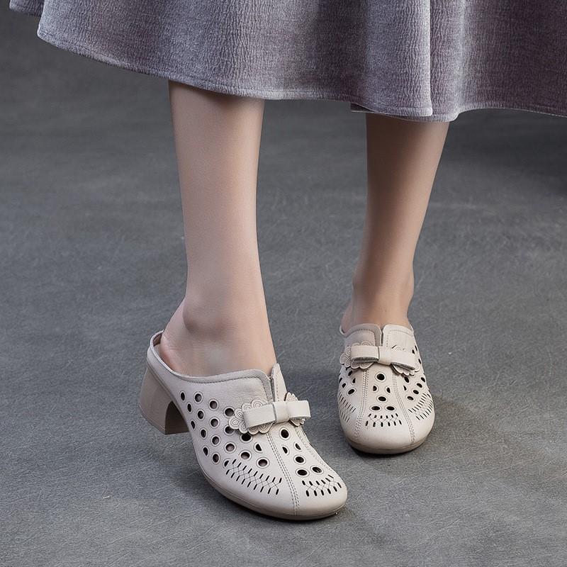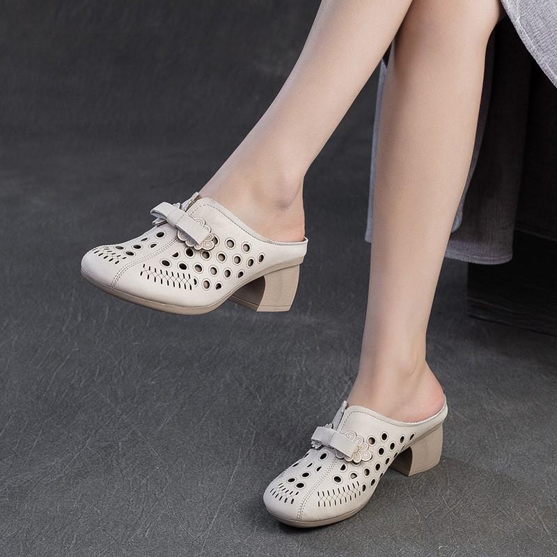 Модные GKTINOO 2025 Лето Новые Ретро Средний каблук Уличные Шлепанцы Натуральная кожа Удобные Дышащие Универсальные Женские Туфли