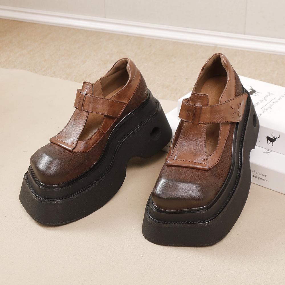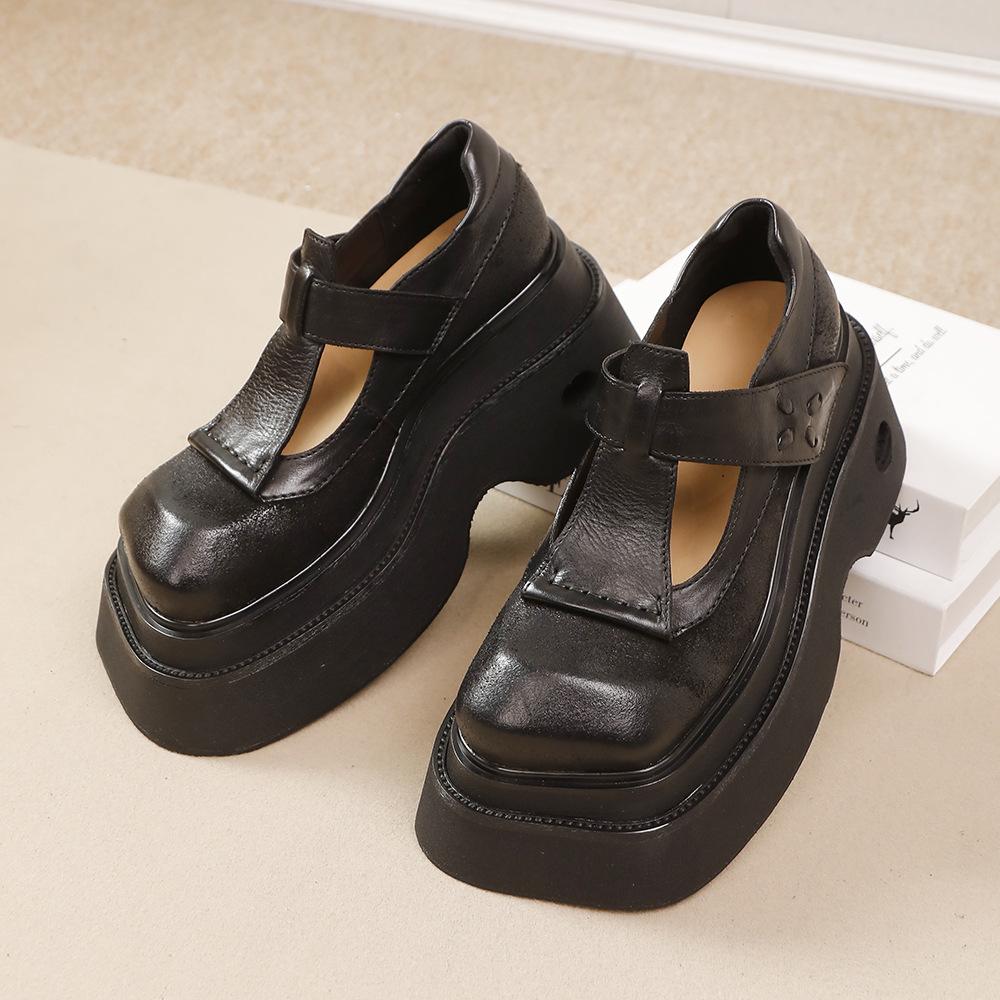 Модные туфли-лодочки GKTINOO в винтажном стиле на толстой подошве с квадратным носком, новинка весны 2025 года, женская платформа из натуральной кожи с увеличением роста