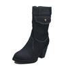 Модные джинсы полусапоги женские ботильоны осень зима теплая римская однотонная обувь без застежек массивный каблук винтажная женская обувь Женские ботинки