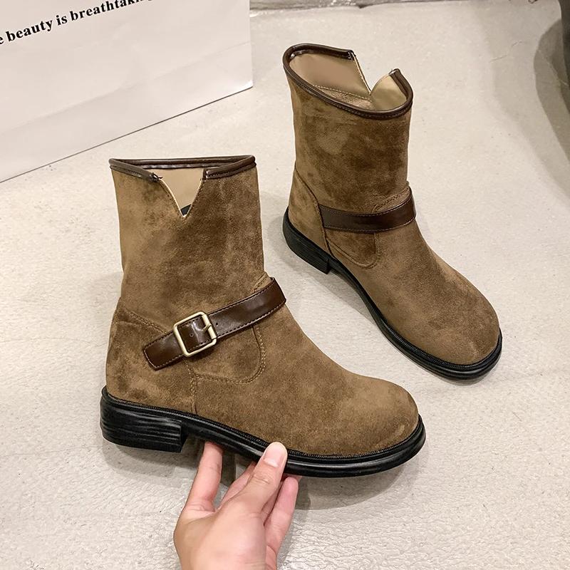 Мода 2025 Женские ботинки Новый модный стиль Вестерн Ковбойские ботинки средней высоты Женские Удобные уличные ботинки Легкая повседневная обувь Женская