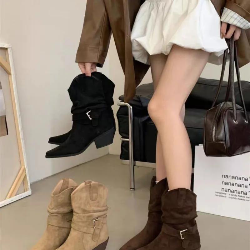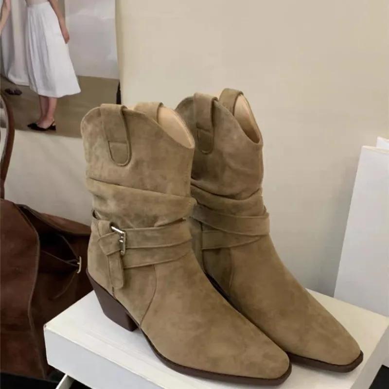 Мода Новый Стиль Мода Женские Замшевые Длинные Сапоги Мягкая Платформа Боковая Молния Женские Сапоги Вестерн Большой Размер Однотонные Роскошные Сапоги