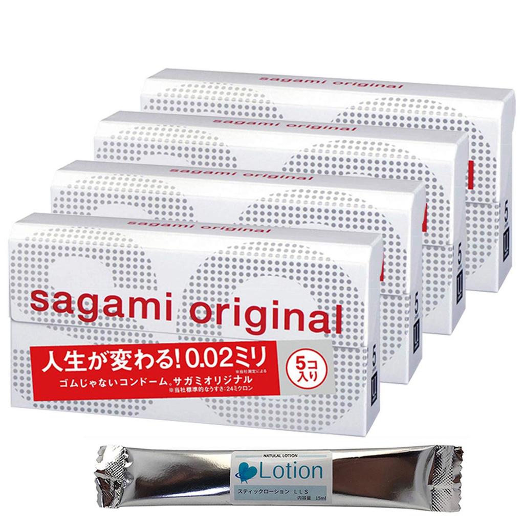 Sagami Original 002 Condoms condoms x 4 Condom Set with 1 stick lotion Condom Contraceptive Skin Adult Sack (5 boxes) 0.02
