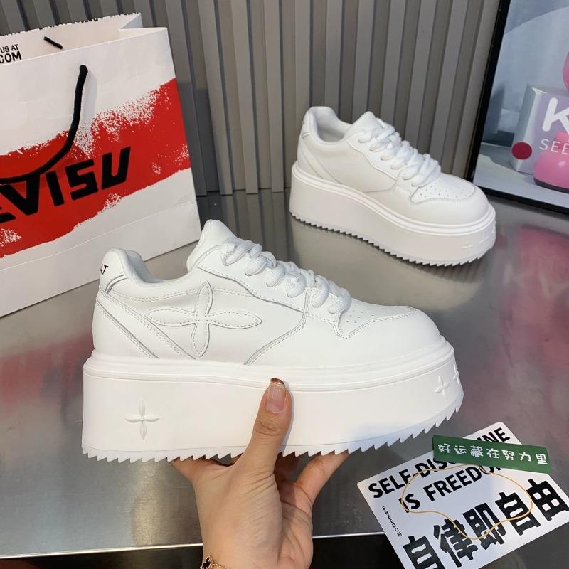 Мода 2025 Новая весна и осень Новый стиль Удобная высота Толстая подошва Женская спортивная обувь Модная повседневная белая обувь