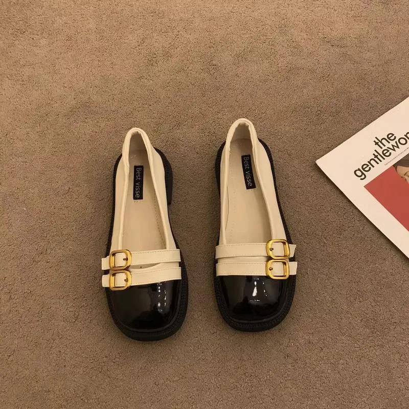 Модная обувь для женщин 2025 Мода Весна и Осень Женские балетки Смешанные цвета Пряжка на одном слове Туфли с мелким вырезом и круглым носком Женские — купить товар онлайн с бесплатной доставкой по всему миру!