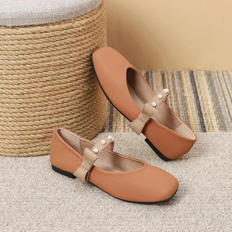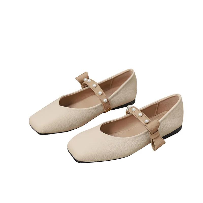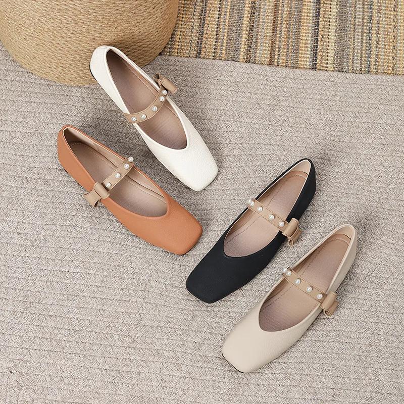 Fashion Women Shoes Butterfly Knot Single Shoes French Mary Jane Pearl Soft Bottom Outdoor Matching Skirt Fashion Flat Shoes 2025