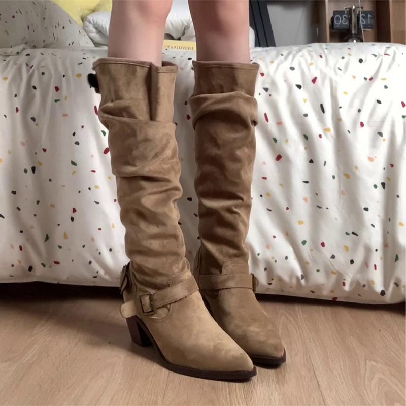 Модные женские высокие сапоги с острым носком, замшевые дизайнерские туфли, модные платья, массивные сапоги, новый тренд 2025, зимние сапоги до колена челси для женщин — купить товар онлайн с бесплатной доставкой по всему миру!