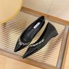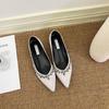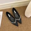 Модные туфли-лодочки женские 2025 лето темперамент острый носок телесный цвет стразы лакированная кожа на высокой черной лакированной плоской подошве
