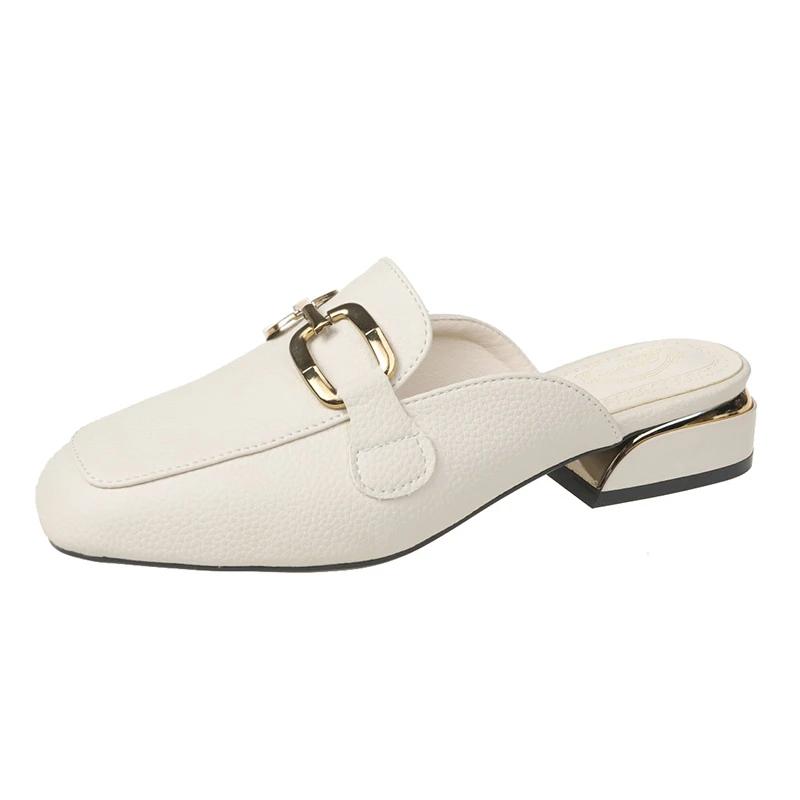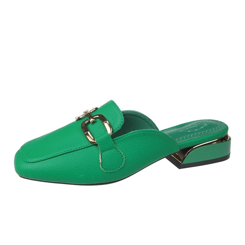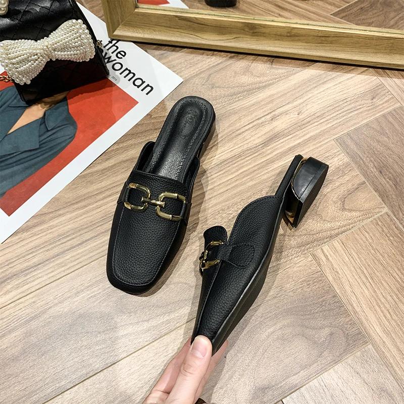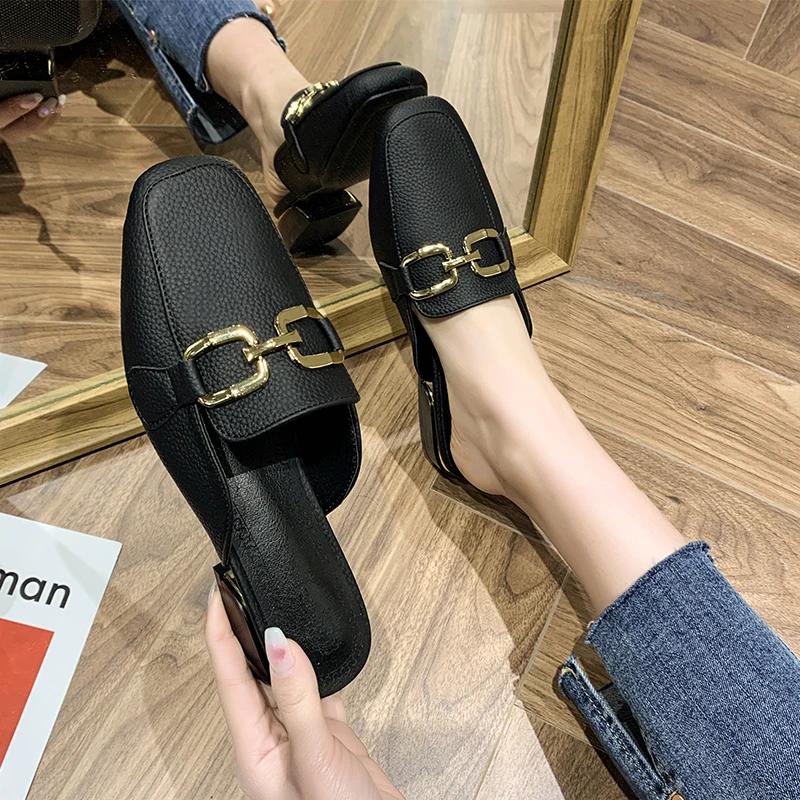Модные полутапочки Baotou, женская обувь, британский стиль, модные металлические пряжки, декоративная средняя пятка, повседневные шлепанцы, весна-лето, ленивые тапочки