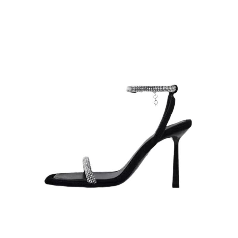 Fashion Diamond high-heeled sandals for women's summer new style square toe exposed temperament European and American one-piece sandals