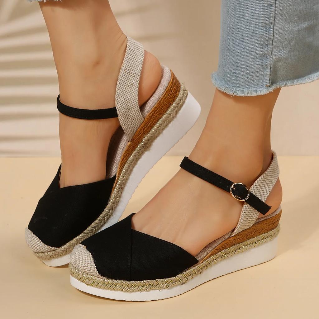 Модные женские босоножки на танкетке с закрытым носком, женские летние туфли-гладиаторы с ремешком на пряжке, женские модные эспадрильи на платформе, сандалии 2025