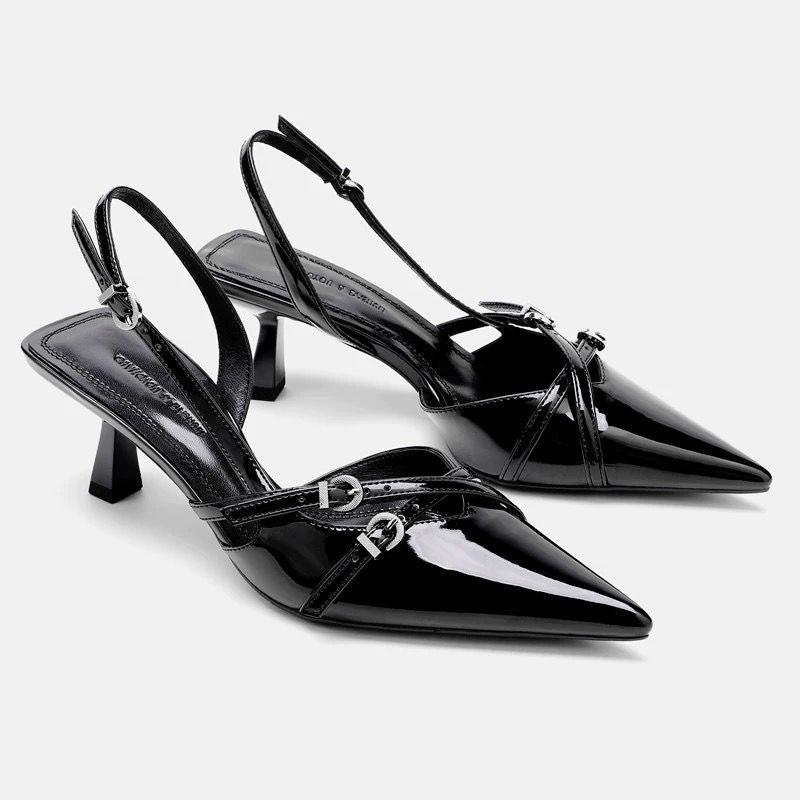 Fashion Pumps Footwear Black Women High Heels Shoes Luxury Fashion Metal Buckle Ladies Heels Shoes Female Pointed Toe Slingbacks