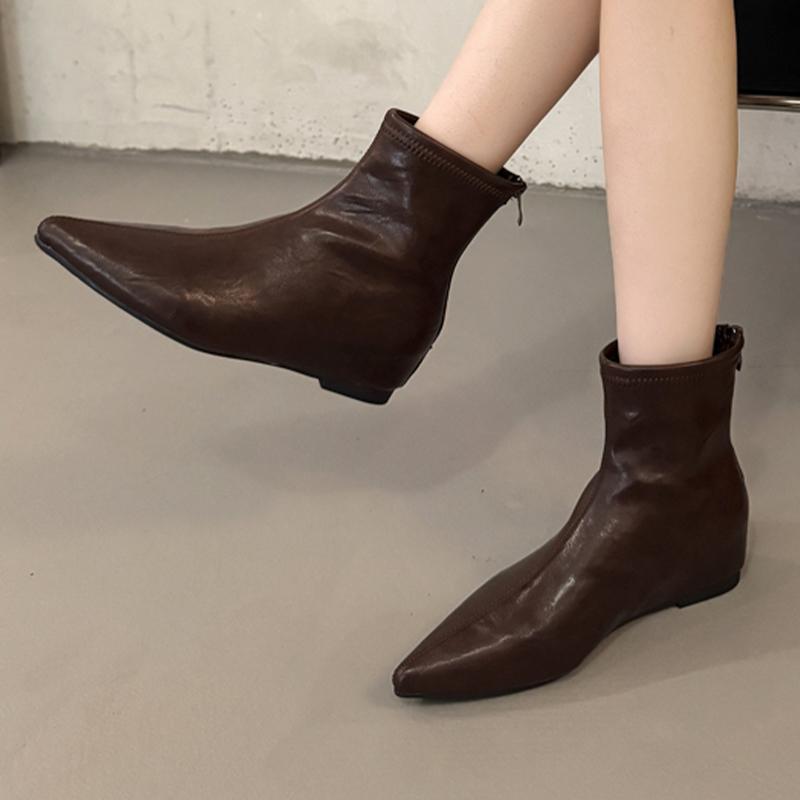 Модные женские ботильоны на плоской подошве с острым носком, дизайнерская обувь для платья, женские короткие ботильоны 2025 зима новые, сексуальные ботильоны челси для женщин