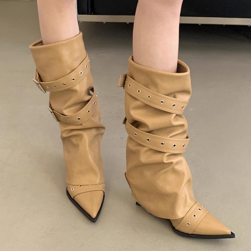 Модные высокие сапоги женские с острым носком на высоком каблуке модная обувь платье сексуальный дизайнер женщина зимние сапоги 2025 люксовые женские челси ботильоны