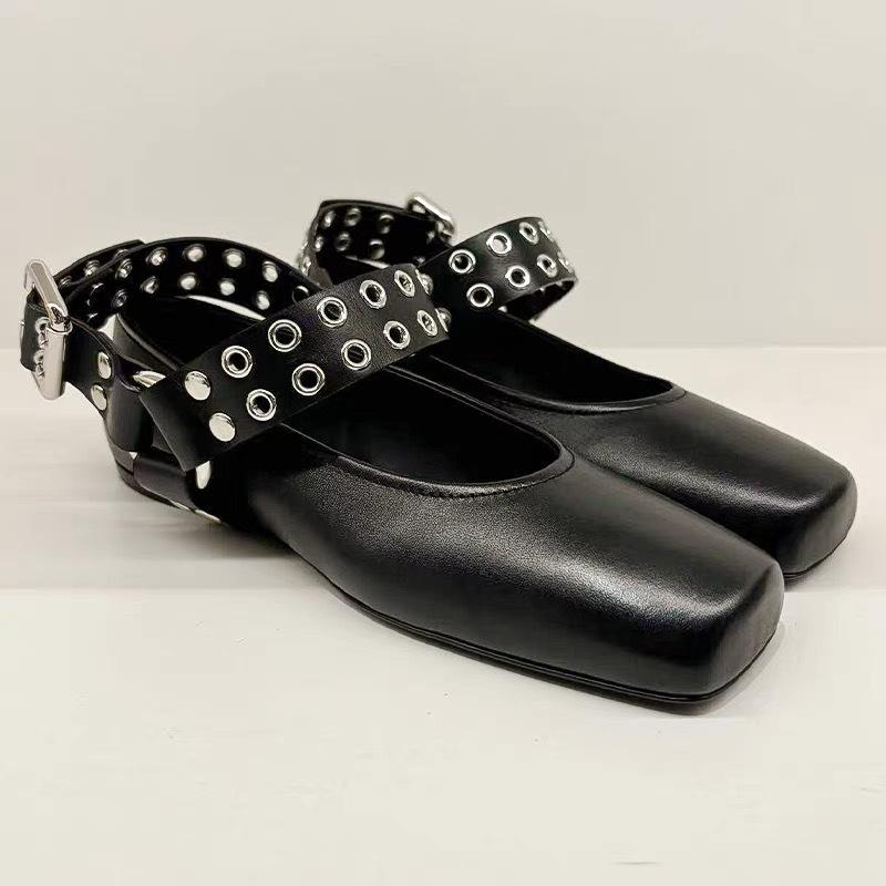 Мода Мода Квадратный носок Клепка Металлическая пряжка Женские балетки Удобная Мягкая кожа Мэри Джейн Лодочки Лоферы Повседневная ленивая обувь