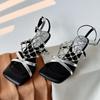 Модные женские римские сандалии с вырезами, квадратный носок, туфли на высоком каблуке, дизайнерские, летние новинки 2025, плетеные, элегантные, для вечеринки, сандалии — купить товар онлайн с бесплатной доставкой по всему миру!