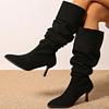 Мода Новый Стиль Мода Женские Сапоги до колена Женские Сапоги Слипоны Современные Сапоги Женские Леопардовые Плиссированные Остроносые Туфли на Тонком Каблуке Женские — купить товар онлайн с бесплатной доставкой по всему миру!