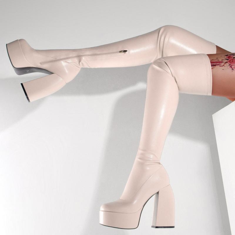 Модные FHC 2024 Новые облегающие ботфорты, Женские сексуальные длинные боты, Модные весенние туфли на платформе, Размер 34-43, Черные, Зеленые, Бежевые, Дропшиппинг