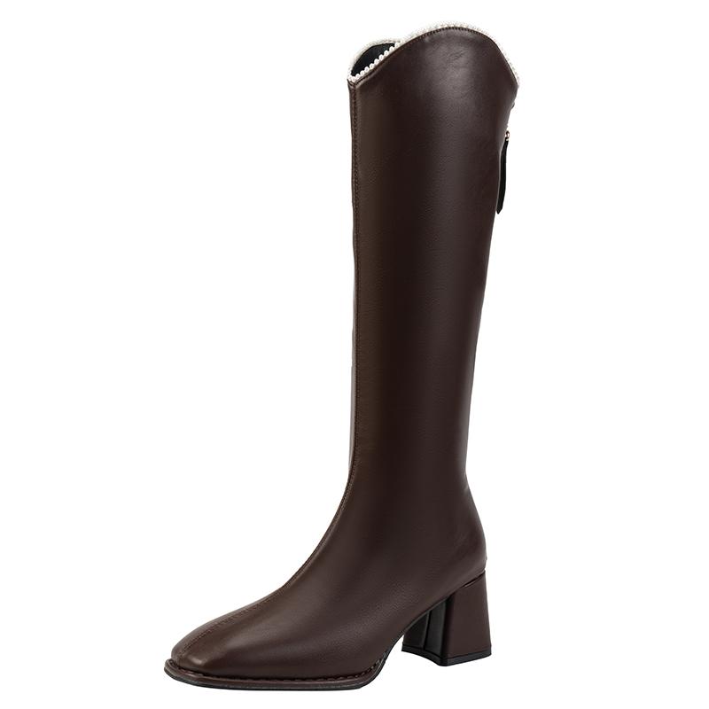 Модные женские модные высокие сапоги на блочном каблуке, зимние новые сапоги с квадратным носком и задней молнией, противоскользящие и износостойкие