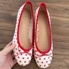 Модная обувь на плоской подошве в горошек, женская новая обувь с круглым носком и мелким вырезом, фееричный бант, подошва из воловьей жилы, мягкая, нескользящая, низкая