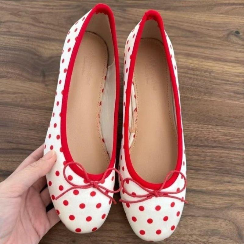 Модная обувь на плоской подошве в горошек, женская новая обувь с круглым носком и мелким вырезом, фееричный бант, подошва из воловьей жилы, мягкая, нескользящая, низкая — купить товар онлайн с бесплатной доставкой по всему миру!