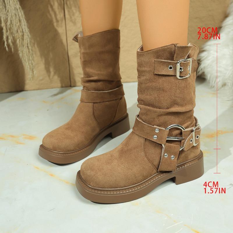 Модные металлические пряжки для ремня, блочный каблук, одинарные ботинки, осенняя новинка, круглый носок, заклепки, платформа, противоскользящие, износостойкие ботильоны