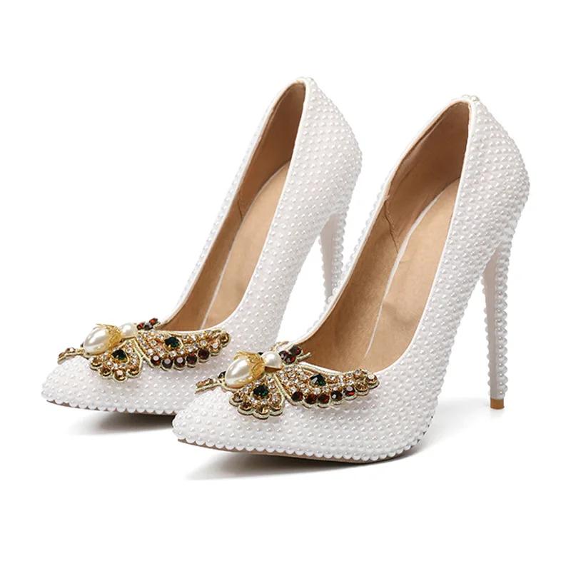 Модные классические женские роскошные свадебные туфли с жемчугом, новые босоножки на высоком каблуке с бантом-бабочкой, тонкие каблуки с острым носком, идеальные высокие каблуки — купить товар онлайн с бесплатной доставкой по всему миру!