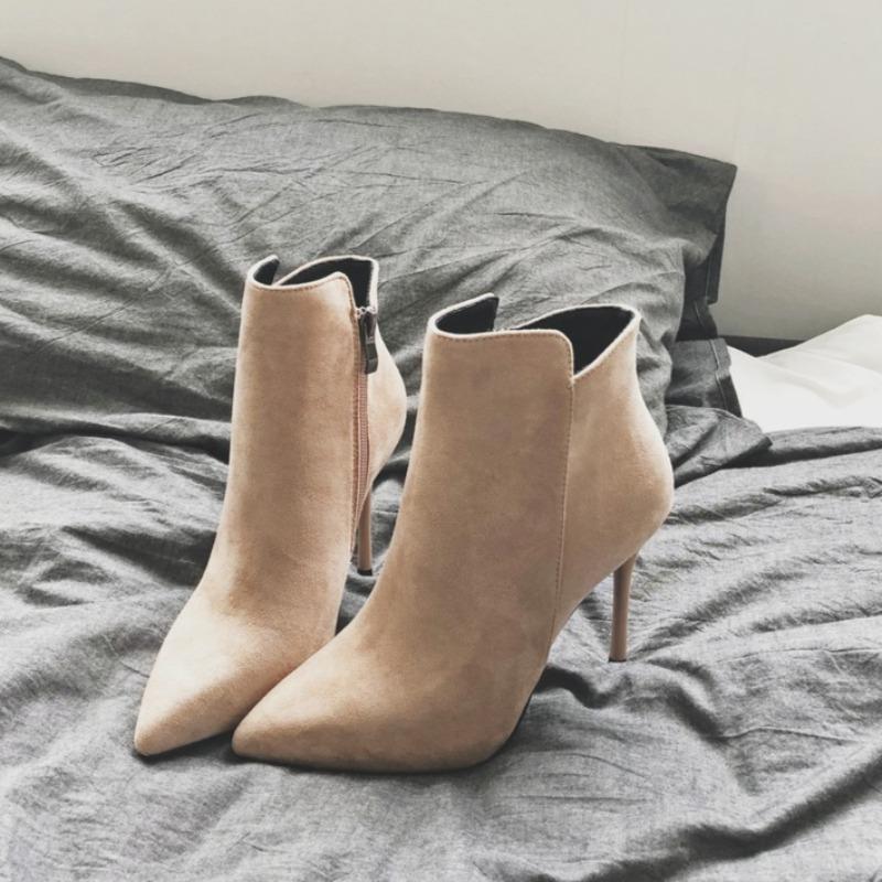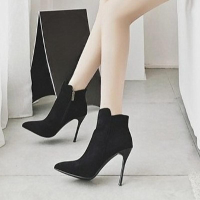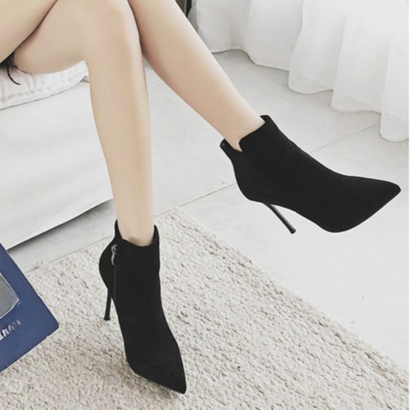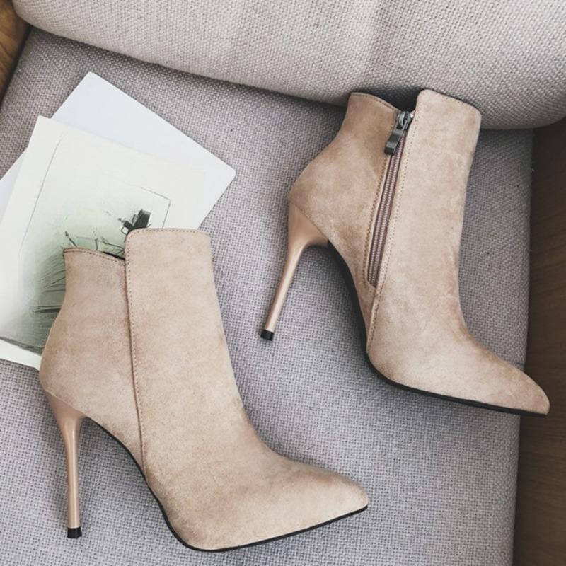 Модные ботильоны на высоком каблуке Женские осенне-зимние новые замшевые ботильоны с острым носком и тонким каблуком
