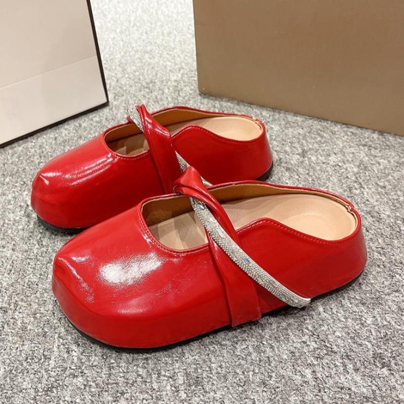 Мода Мода Шлепанцы с плоским верхом Лето Новые Круглый носок Мелкий вырез Хрусталь с Нескользящий Износостойкий Каблук Обувь